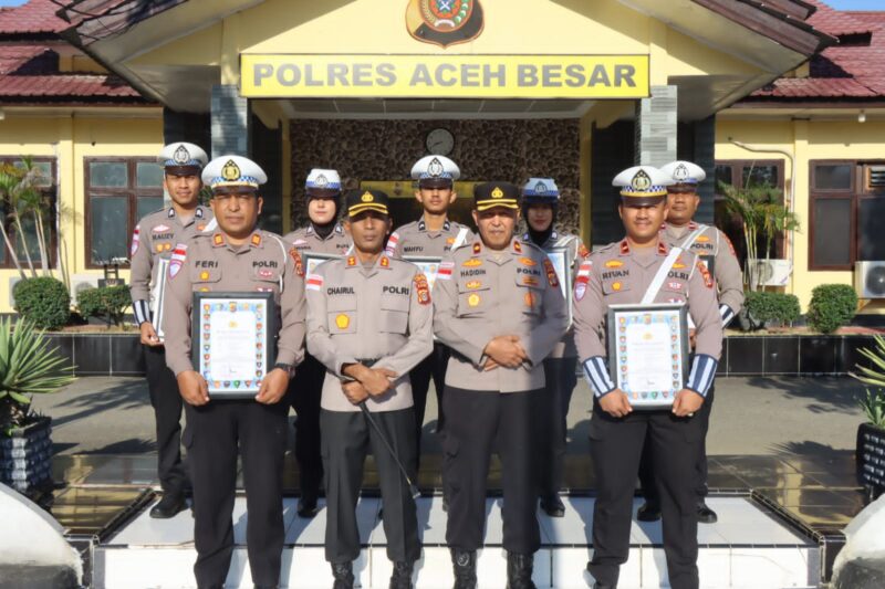 Dalam giat tersebut turut diberikan penghargaan dari Kapolda Aceh kepada Personel Polres Aceh Besar sebanyak 10 orang terdiri dari Personel Sat Lantas sebanyak 7 Personel dan masyarakat pendukung tugas kepolisian sebanyak 3 orang.