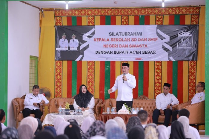 Suasana hangat dan penuh kebersamaan mewarnai silaturrahmi antara Bupati Aceh Besar dengan para kepala sekolah SD dan SMP, baik negeri maupun swasta se-Aceh Besar. Kegiatan tersebut berlangsung di Aula SMPN 3 Ingin Jaya, Rabu (1/4/2026).