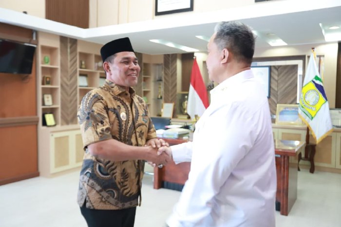 Bupati Aceh Besar H Muharram Idris menerima kunjungan Staf Ahli Menteri Dalam Negeri Bidang Hukum dan Kesatuan Bangsa, Irjen Pol Edi Mardianto SIK MSi terkait dengan pemantauan Sistem Keamanan Lingkungan (Siskamling) di ruang Bupati Aceh Besar, Kamis (11/9/2025).