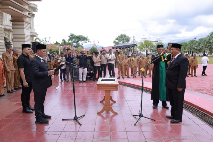 Bupati Aceh Besar, H. Muharram Idris yang akrab disapa Syech Muharram, resmi melantik Bahrul Jamil, SSos, MSi sebagai Sekretaris Daerah (Sekda) Aceh Besar secara definitif, Pelantikan dan pengambilan sumpah jabatan pimpinan tinggi pratama tersebut digelar di halaman Kantor Bupati Aceh Besar, Kota Jantho, Senin (14/7/2025).