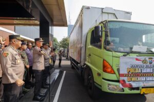 Kapolda Jawa Timur memberangkatkan 50.789 paket bantuan kemanusiaan Polda Jatim peduli Bencana banjir di wilayah Jawa tengah. Kegiatan ini dilaksanakan di Lobby Gedung Tribrata Mapolda Jatim, Jumat, 22 Maret 2024.
