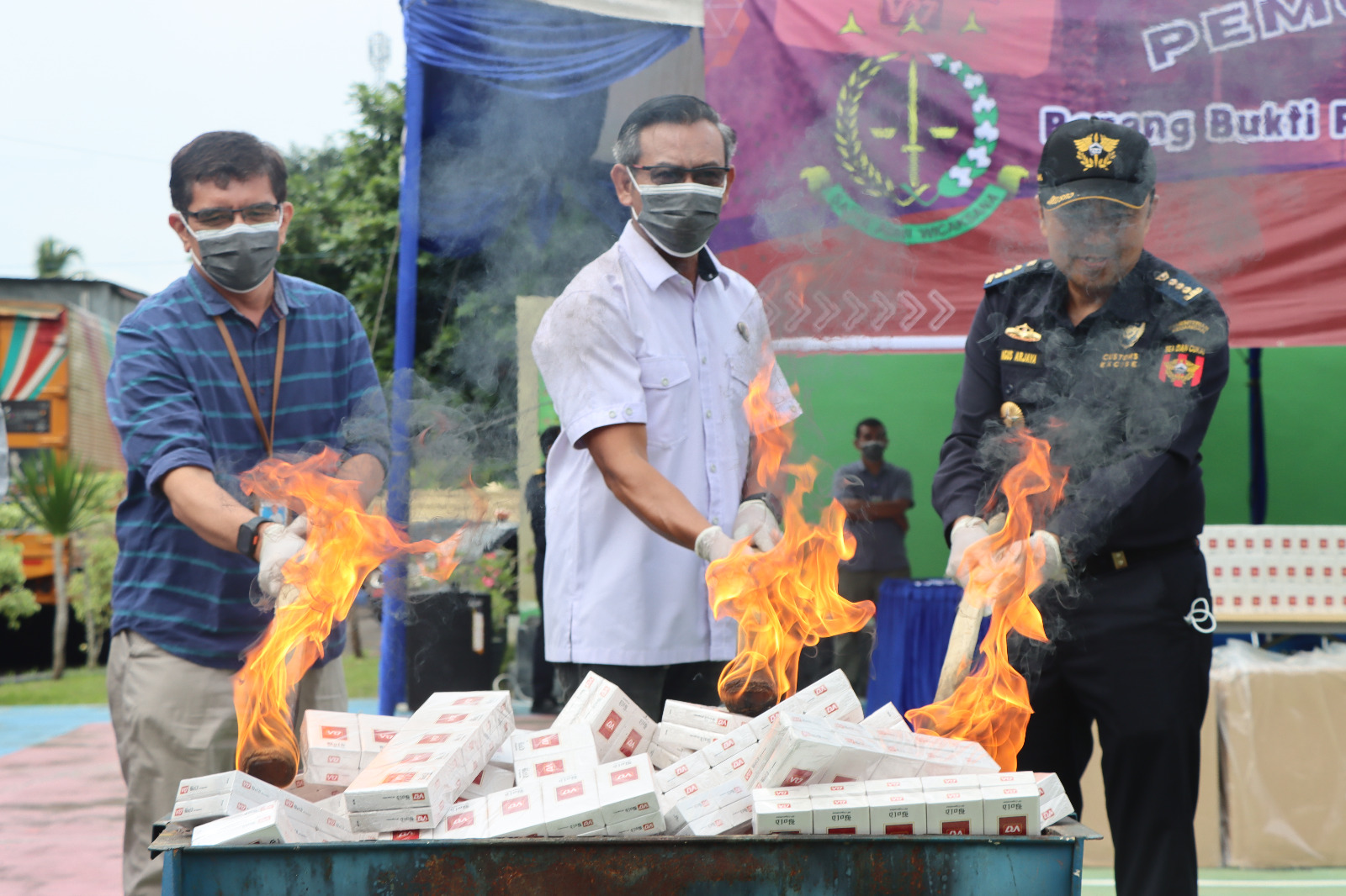 Kegiatan pemusnahan barang bukti tersebut digelar di Kantor Wilayah DJBC Aceh, Banda Aceh, sambung Kabid Humas.