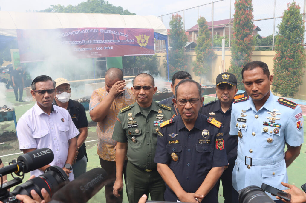 Kasubdit I Indagsi Ditreskrimsus Polda Aceh AKBP Tirta menghadiri kegiatan pemusnahan barang bukti perkara tindak pidana kepabeanan dan cukai, Kamis (2/5/2024).