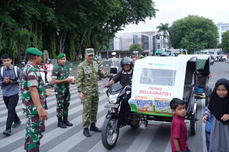 Kodam Iskandar Muda kembali menunjukkan komitmen dan kepeduliannya kepada masyarakat melalui pelaksanaan kegiatan sosial “Jumat Berkah” yang rutin digelar setiap pekan. Pada Jumat pagi, 21 November 2025, jajaran Kodam IM membagikan sebanyak 393 paket nasi kotak kepada masyarakat yang membutuhkan di kawasan Masjid Raya Baiturrahman, Banda Aceh.