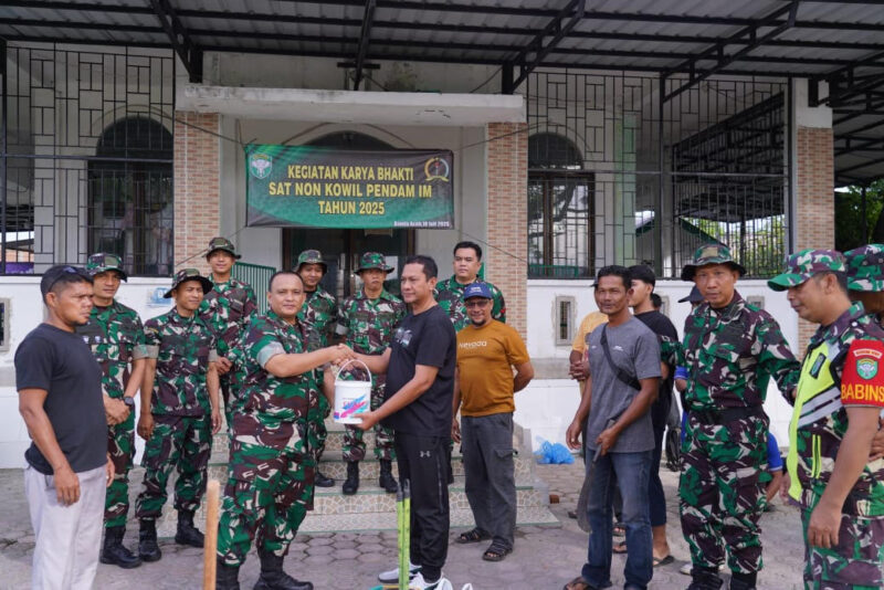 Komitmen TNI dalam memperkuat kemanunggalan bersama rakyat kembali ditunjukkan melalui pelaksanaan Karya Bhakti Satuan Non Komando Kewilayahan (Sat Non Kowil) Tahun Anggaran 2025 oleh Satuan Penerangan Kodam Iskandar Muda (Pendam IM). Kegiatan ini digelar pada Jumat pagi di Meunasah Babussalam, Gampong Lampaseh Aceh, Dusun Tgk Lheun Deyah, Kecamatan Meuraxa, Kota Banda Aceh. Jumat (1/6/25).