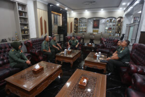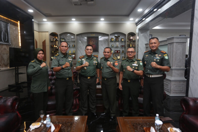 Panglima Komando Daerah Militer Iskandar Muda (Pangdam IM), Mayor Jenderal TNI Niko Fahrizal, M.Tr.(Han)., menerima audiensi Kaotmil I-01 Banda Aceh Letkol Chk Agung Catur Utomo S.H., M.H. di ruang kerja Pangdam IM, Kamis (18/04/24) siang.