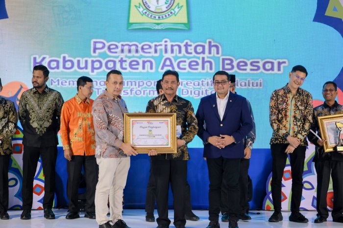 Pemerintah Kabupaten (Pemkab) Aceh Besar kembali menoreh prestasi di bidang ekonomi kreatif dengan kategori Membina Gampong Kreatif melalui Transformasi Digital. Piagam penghargaan tersebut diserahkan oleh Menteri Ekonomi Kreatif (Ekraf) Republik Indonesia, Teuku Riefky Harsya BSc MT, kepada Wakil Bupati Aceh Besar, Drs Syukri A Jalil, pada ajang Serambi Ekraf Awards 2025 yang digelar di The Pade Hotel, Aceh Besar, Jumat (29/8/2025) malam.