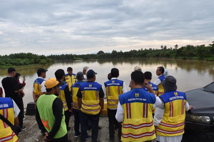 Direktur Jembatan Direktorat Jenderal Bina Marga Rakhman Taufik, ST, M.SC bersama rombongan melakukan kunjungan lapangan dalam rangka meninjau kesiapan lahan untuk proyek penggantian Jembatan Krueng Woyla yang berlokasi di Gampong Peuribu Kecamatan Arongan Lambalek Kabupaten Aceh Barat kemaren Rabu 29/12/2925.