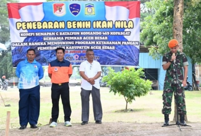 Pemerintah Kabupaten (Pemkab) Aceh Besar menunjukkan komitmen nyata dalam mendukung pelestarian lingkungan dan memperkuat sektor perikanan sebagai bagian dari upaya menjaga keseimbangan ekosistem dan ketahanan pangan. Hal ini ditandai dengan penglepasan bibit ikan di kolam Kopasgat 469 Lanud Sultan Iskandar Muda (SIM), Blang Bintang, Aceh Besar, Rabu (22/1/2025).