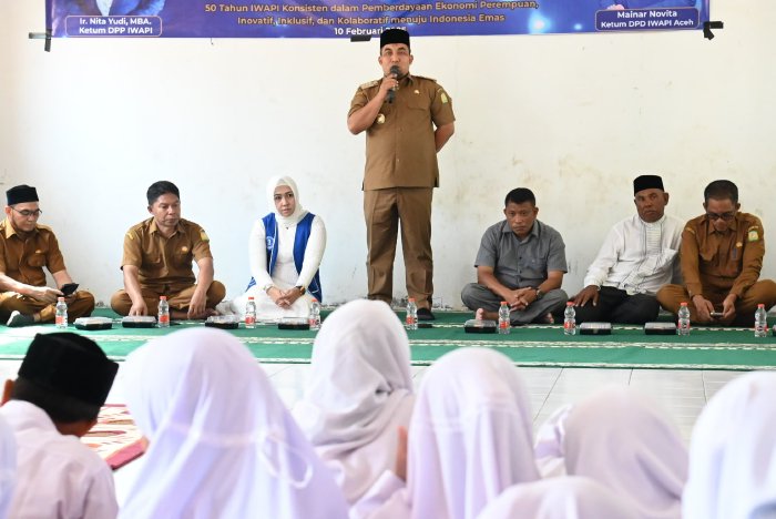 Dalam rangka memperingati Hari Ulang Tahun (HUT) ke-50 Ikatan Wanita Pengusaha Indonesia (IWAPI), Penjabat (Pj) Bupati Aceh Besar, Muhammad Iswanto, S.STP, MM, menghadiri seremonial pembagian Makanan Bergizi Gratis (MBG) di SD Negeri Mon Singet, Kajhu, Kecamatan Baitussalam, Aceh Besar, pada Senin (10/2/2025).