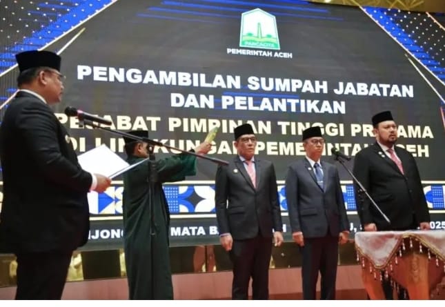 Pelantikan itu dilakukan berdasarkan Keputusan Gubernur Aceh tentang Pemberhentian dan Pengangkatan dalam Jabatan Pimpinan Tinggi Pratama pada Pemerintah Aceh.