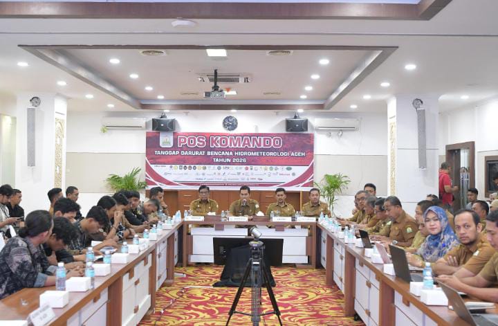 Sekretaris Daerah (Sekda) Aceh, M. Nasir, menerima kunjungan audiensi Aliansi Mahasiswa se-Aceh di Posko Penanganan Bencana Pemerintah Aceh, Selasa (13/1/2026). Pertemuan ini bertujuan untuk menyinkronkan data lapangan serta menjelaskan langkah-langkah strategis yang telah diambil pemerintah dalam menangani dampak bencana banjir besar di Aceh.