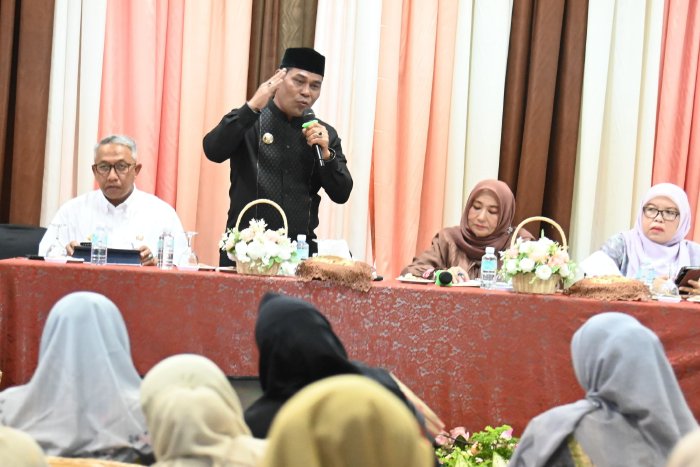 Bupati Aceh Besar Syech Muharram didampingi Asisten I Sekdakab Farhan AP melakukan pertemuan dan silaturahmi dengan Kepala Dinas Kesehatan, Direktur Rumah Sakit Umum Daerah (RSUD) serta seluruh Kepala Puskesmas (Kapus) dalam wilayah Kabupaten Aceh Besar, di Gedung Dekranasda Aceh Besar, Gampong Gani, Kecamatan Ingin Jaya, Jumat (09/05/2025).