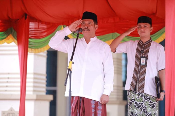 Wakil Bupati Aceh Besar Drs H Syukri bertindak selaku Inspektur Upacara peringatan Hari Santri tahun 2025 di halaman Kantor Bupati Aceh Besar, Rabu (22/10/2025). Hadir dalam kesempatan itu, Forkopimda Aceh Besar, Staf Ahli Bupati Aceh Besar, Asisten Setdakab, Kepala OPD, dan ratusan santri Pesantren Teknologi Muamalat Solidarity Boarding School Kota Jantho dan Pesantren Al-Fauzul Kabir Kota Jantho.