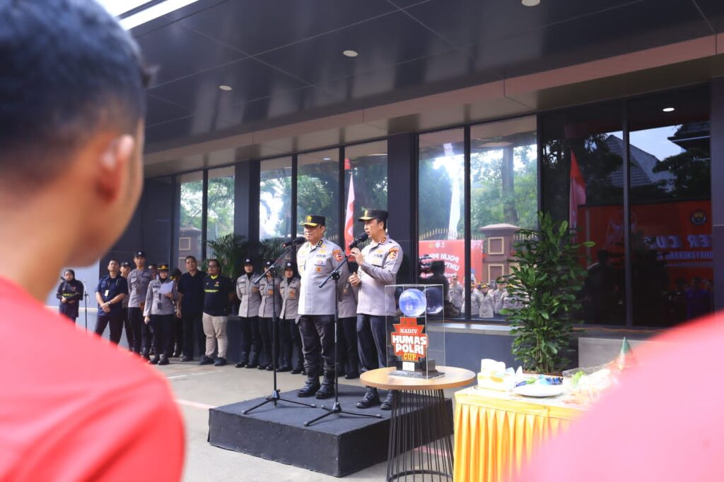 Kepolisian Negara Republik Indonesia (Polri) bersama wartawan yang bertugas meliput di Mabes Polri menggelar Seven Soccer Bhayangkara Presisi Cup 2023 dalam rangka perayaan Hari Bhayangkara ke-77. Acara ini dibuka As SDM Kapolri Irjen Dedi Prasetyo dan Kadiv Humas Irjen Sandi Nugroho di kantor Divisi Humas Polri, Jakarta Selatan, Jumat, 7 Juli 2023.